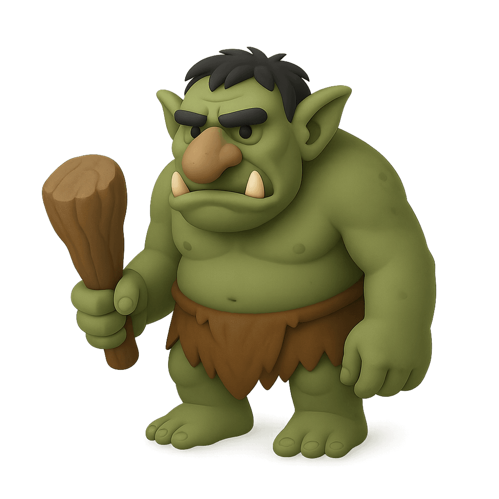 A troll is a large, mythical creature from folklore and fantasy, often depicted as a brutish, slow-witted being that dwells in caves or under bridges. Trolls are common in stories and legends, sometimes as antagonists or obstacles for heroes.
