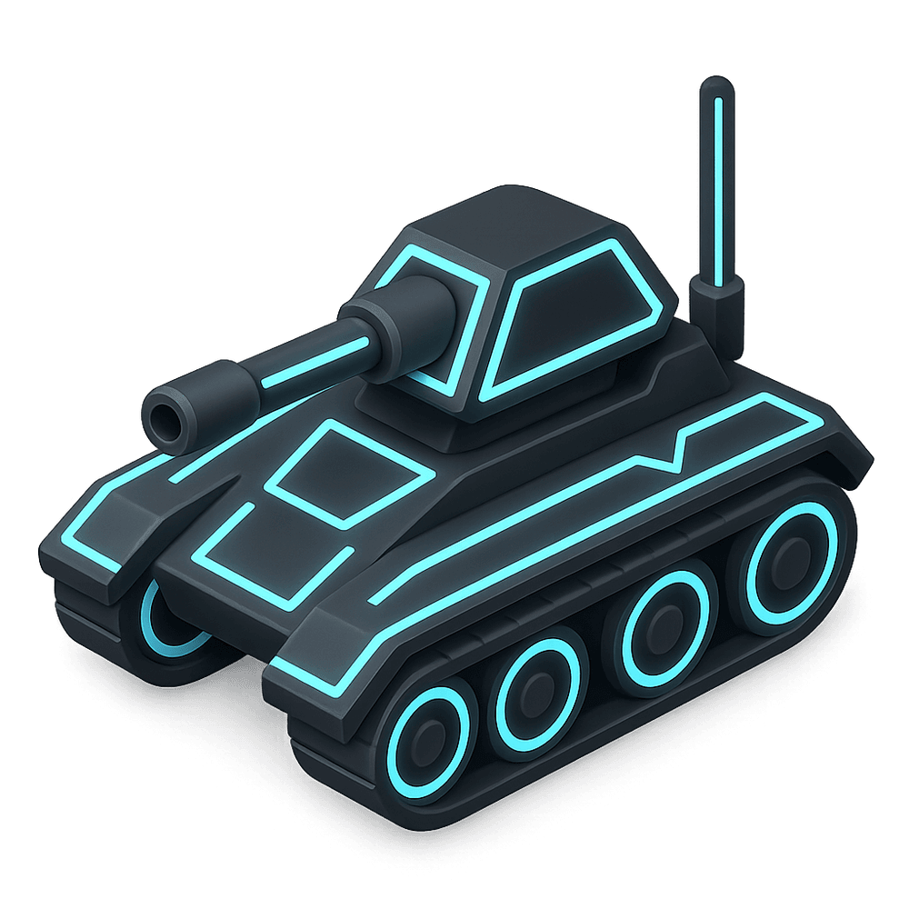 A futuristic, glowing battle vehicle from the digital world of Tron, known for its angular design and neon-lit armor. The Tron Tank is a symbol of high-tech warfare and imagination, often featured in science fiction and fantasy settings.