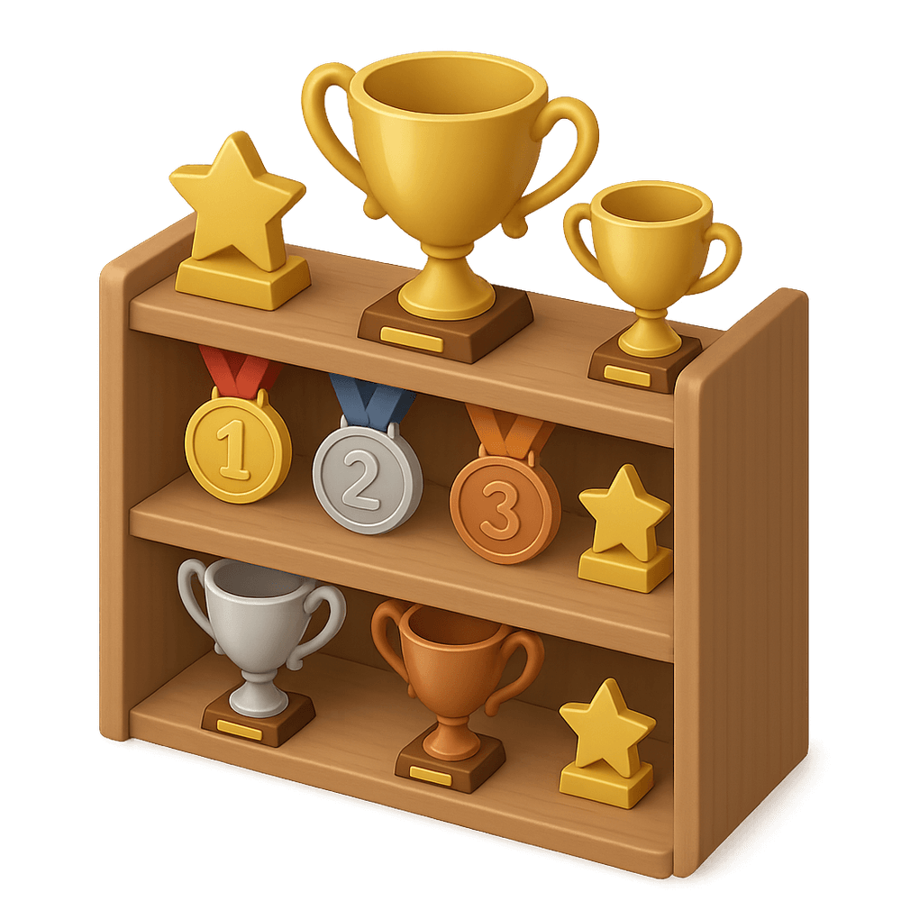 A trophy shelf is a piece of furniture designed to display awards, medals, and trophies earned in sports or competitions. It helps organize and showcase achievements in a prominent place.