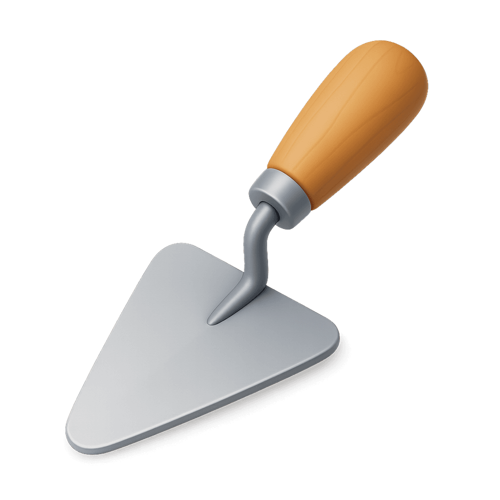 A trowel is a small hand tool with a flat, pointed blade, used in construction and gardening for spreading, smoothing, or shaping materials like mortar or soil.