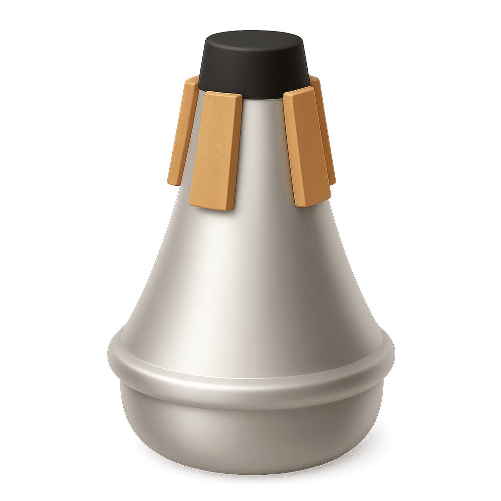 A trumpet mute is a device inserted into the bell of a trumpet to alter its sound, reducing volume and changing tone for different musical effects. Commonly used in jazz and classical music performances.
