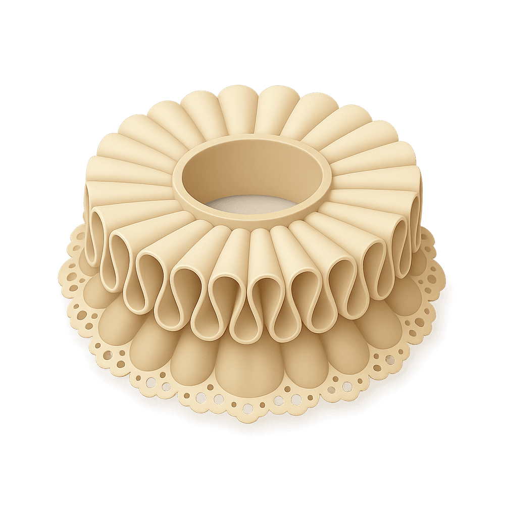 A Tudor Ruff Collar is a large, elaborate, pleated collar made of linen or lace, popular in 16th and early 17th century Europe. Worn as a fashionable accessory by both men and women, it symbolized wealth and status during the Tudor period.