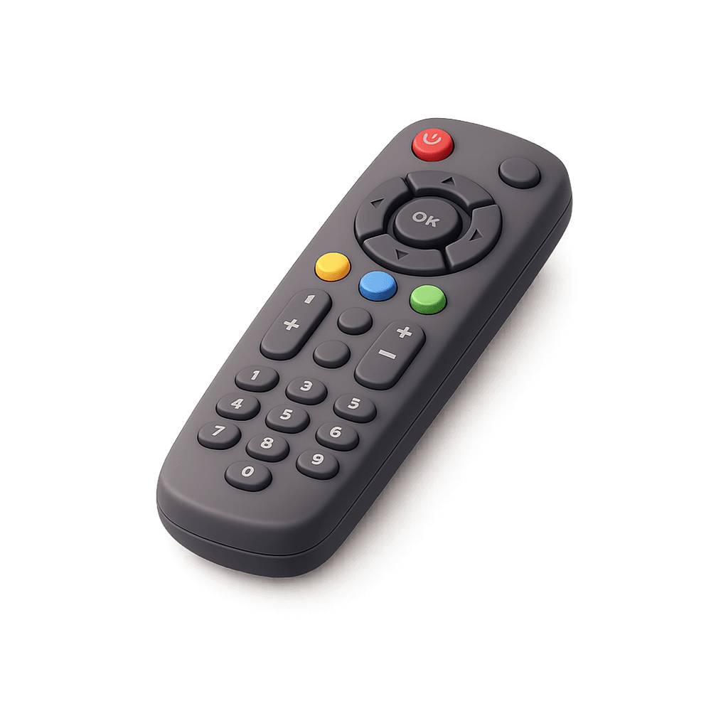 A TV remote is a handheld electronic device used to wirelessly control a television, allowing users to change channels, adjust volume, and access various functions from a distance. It is a common household item that enhances convenience and comfort in everyday life.