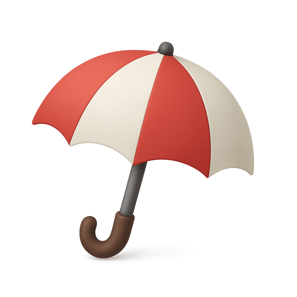 A portable device used for protection against rain or sunlight, typically consisting of a circular fabric canopy mounted on a folding metal frame with a central handle.