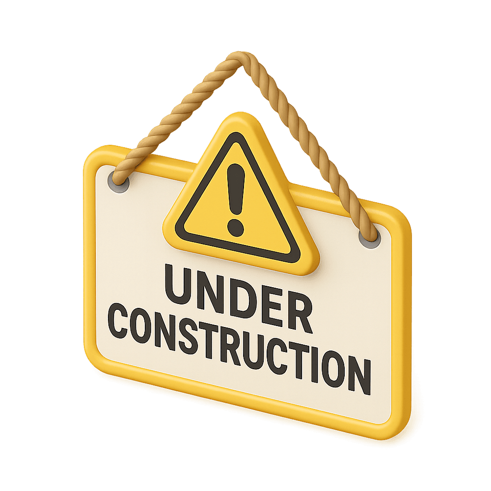 A visual sign used to indicate that an area, feature, or service is currently being built, repaired, or is temporarily unavailable. Commonly used in digital interfaces and real-world environments to warn users or passersby of ongoing construction or updates.