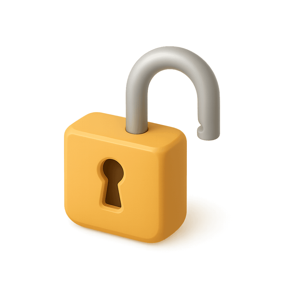 A visual symbol representing the action of unlocking or granting access, commonly used in user interfaces to indicate that a feature, file, or area is no longer restricted or locked.