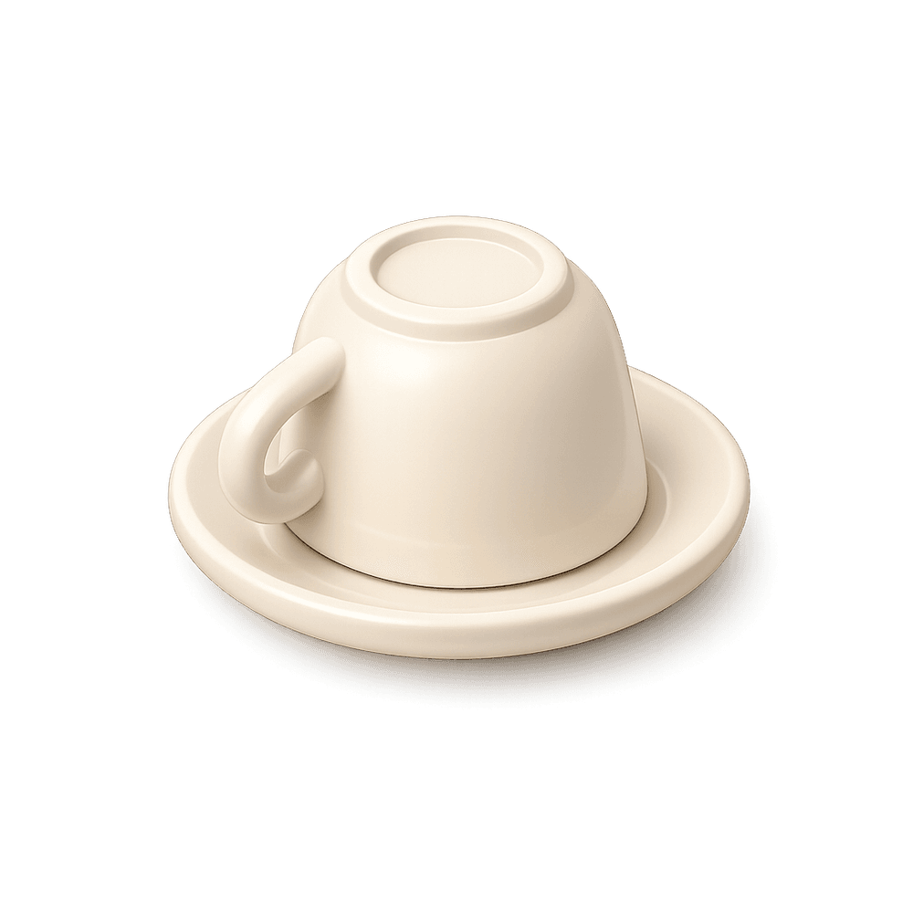 A small espresso cup designed to look like it is upside-down, adding a playful twist to your coffee experience. Perfect for serving espresso with a touch of humor and style.