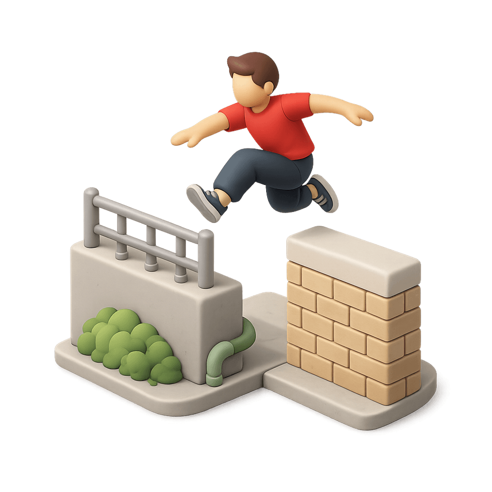 An Urban Parkour Runner is an athlete who navigates city environments by running, jumping, and climbing over obstacles with speed and agility. Parkour runners use urban landscapes as their playground, demonstrating strength, balance, and creativity in movement.