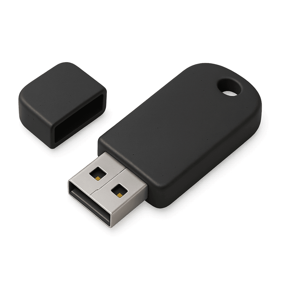A small, portable data storage device that plugs into a computer's USB port and allows for easy transfer and storage of digital files such as documents, photos, and videos.