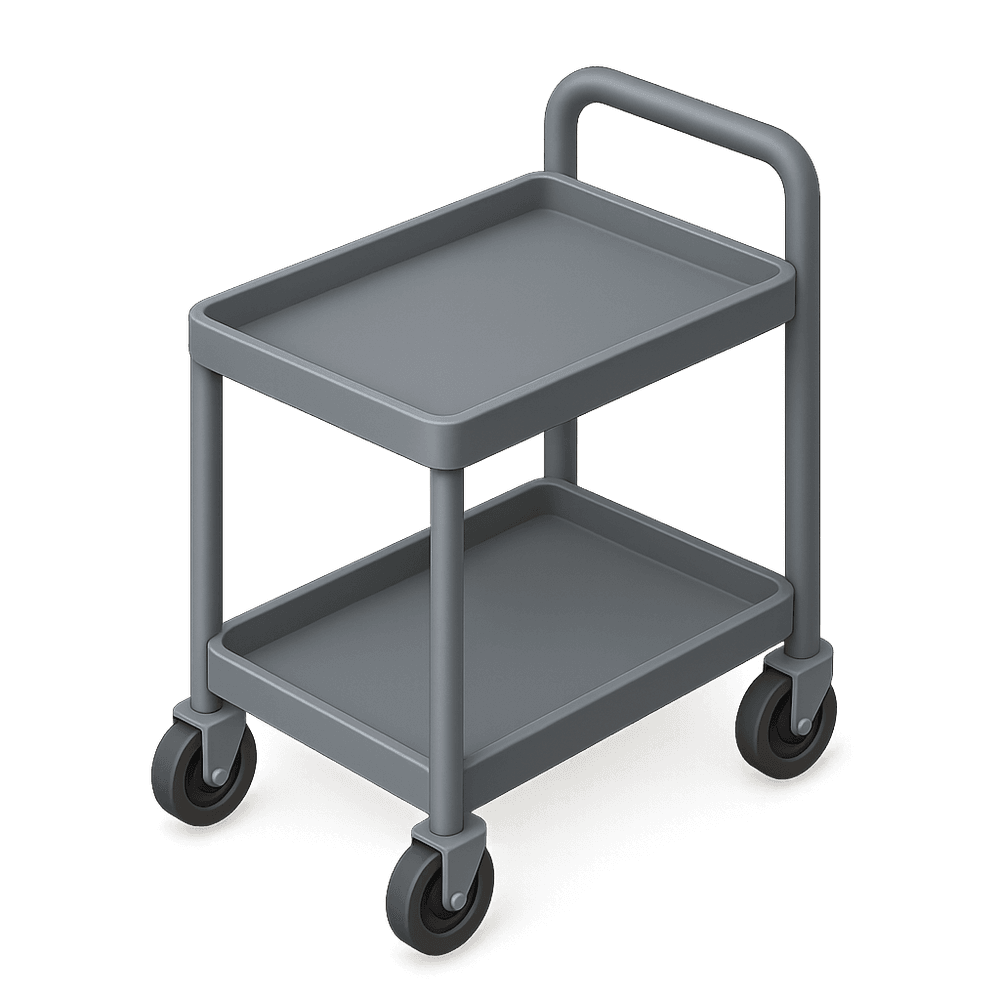A utility cart is a versatile wheeled cart designed for transporting tools, supplies, or materials in workplaces such as warehouses, offices, or industrial settings. It helps improve efficiency and organization by making it easy to move items from one location to another.
