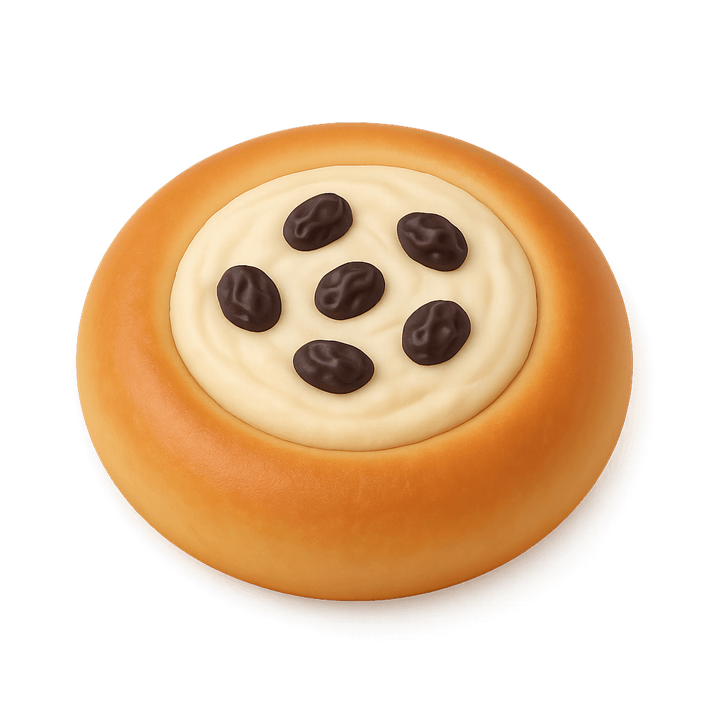 Vatrushka is a traditional Eastern European pastry consisting of a soft, round bun filled with sweetened cottage cheese or quark, sometimes topped with fruit or raisins. It is commonly enjoyed as a dessert or snack.