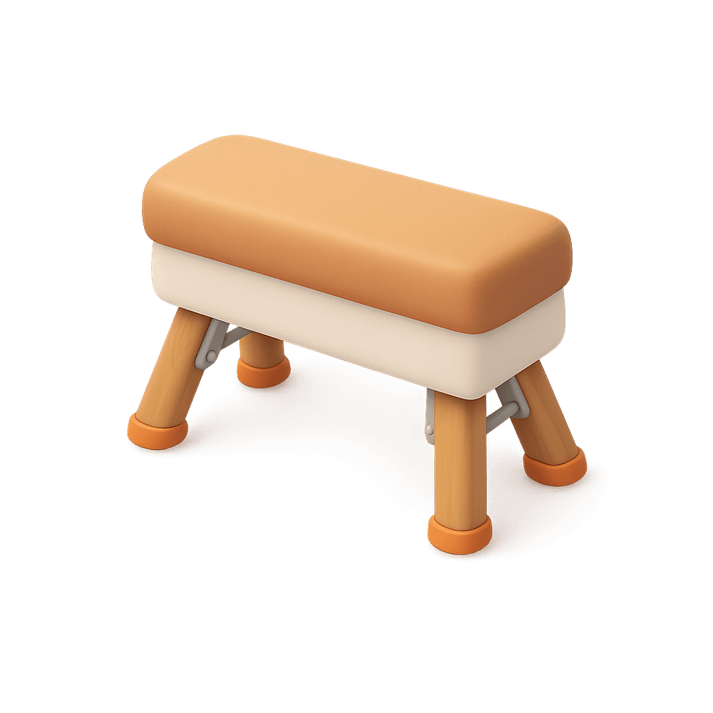 A vaulting buck is a padded, sturdy piece of gymnastic equipment used in sports such as gymnastics and physical education. It is designed for athletes to leap over or perform exercises on, helping to develop agility, strength, and coordination.