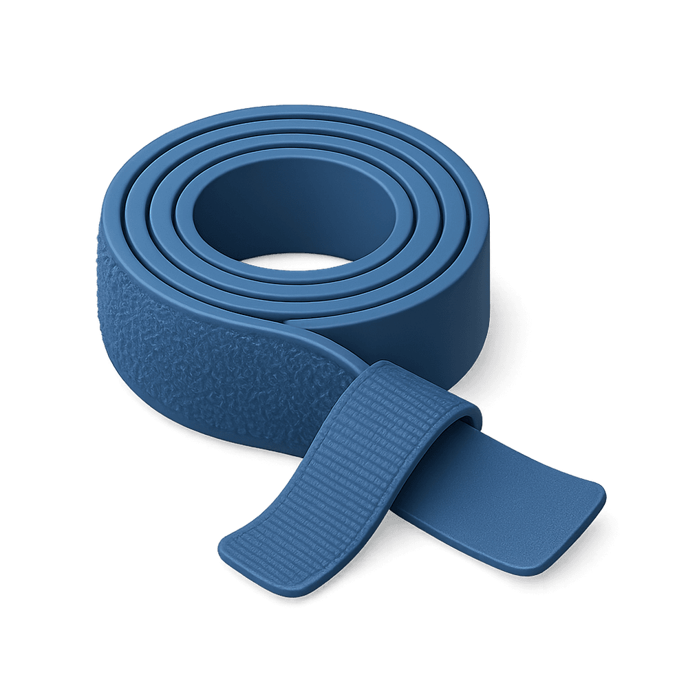 A Velcro strap is a reusable fastener made of two fabric strips that attach to each other with tiny hooks and loops. It is commonly used to bundle, secure, or organize items in everyday life, such as cables, bags, or clothing.