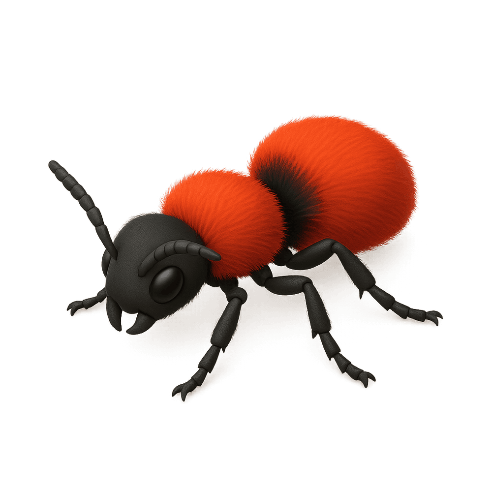 The Velvet Ant is a striking, fuzzy insect known for its bright coloration and painful sting. Despite its name, it is actually a type of wasp, with females being wingless and resembling large, hairy ants. Velvet ants are found in various habitats and are known for their warning colors and tough exoskeleton.