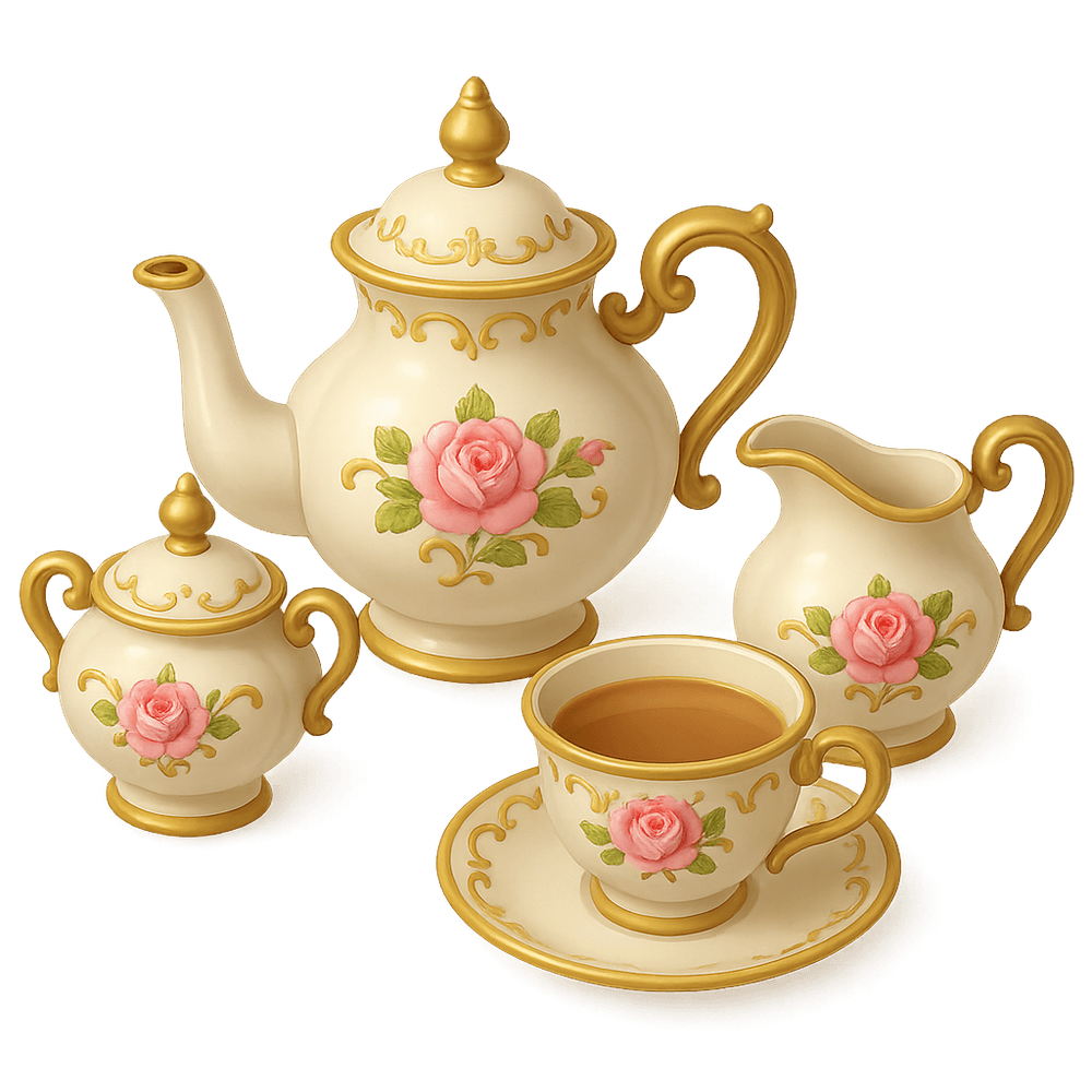 A Victorian Tea Set is a collection of ornate teapots, cups, saucers, and serving pieces, often made from fine porcelain or silver, used during the Victorian era for social tea gatherings. These sets reflect the elegance and social customs of 19th-century Britain.