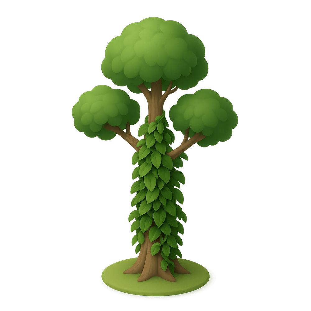 A tall tree whose trunk and branches are covered in lush, climbing vines. This natural feature provides habitat for wildlife and adds to the biodiversity and beauty of forests and outdoor landscapes.