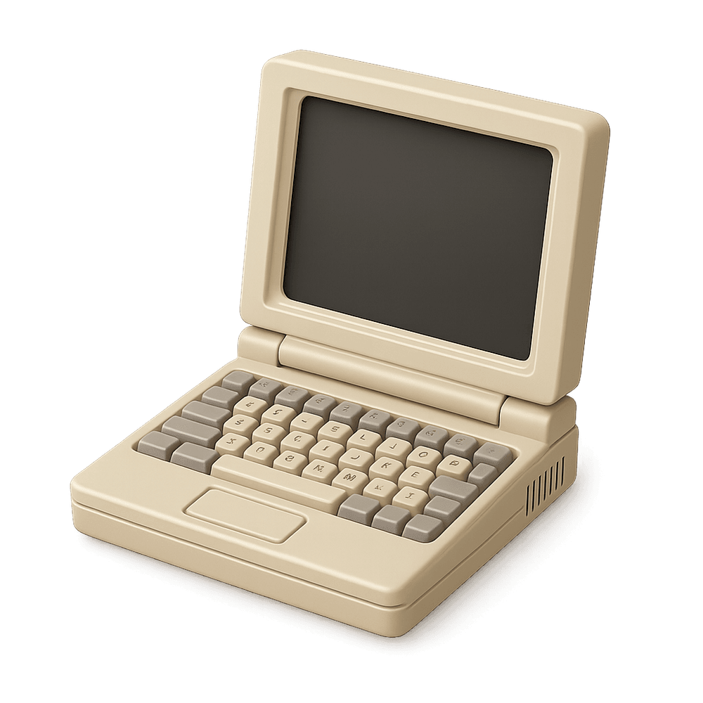 A portable computer from the late 20th or early 21st century, featuring a hinged clamshell design with a screen and keyboard. Known for its retro aesthetic and significance in the evolution of personal computing.