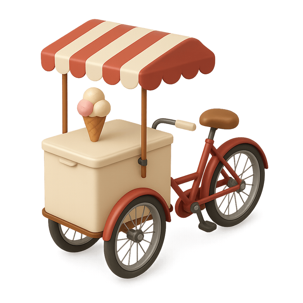 A Vintage Ice Cream Bicycle is a classic pedal-powered vehicle designed for selling and transporting ice cream. Often seen at fairs and parks, it features a built-in insulated box for keeping treats cold, combining nostalgia with mobile vending.