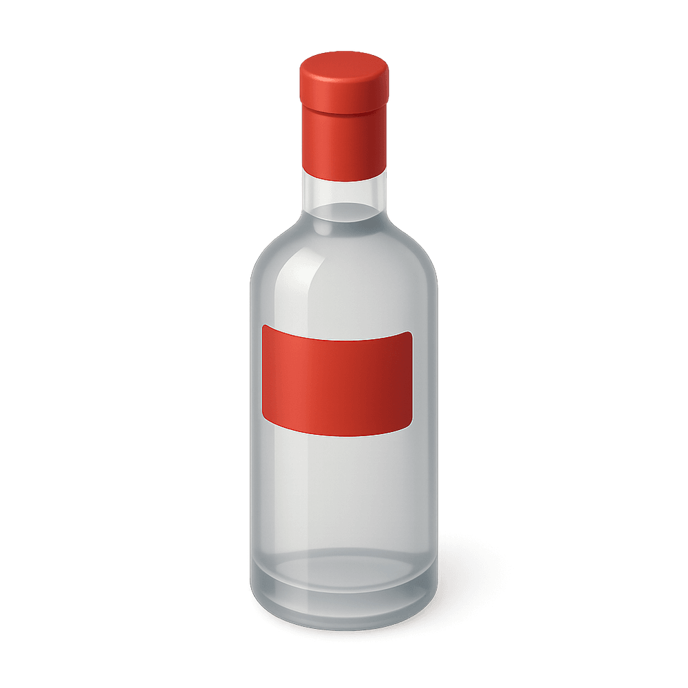 A clear glass bottle containing vodka, a distilled alcoholic beverage made primarily from water and ethanol. Commonly used in cocktails and social gatherings.