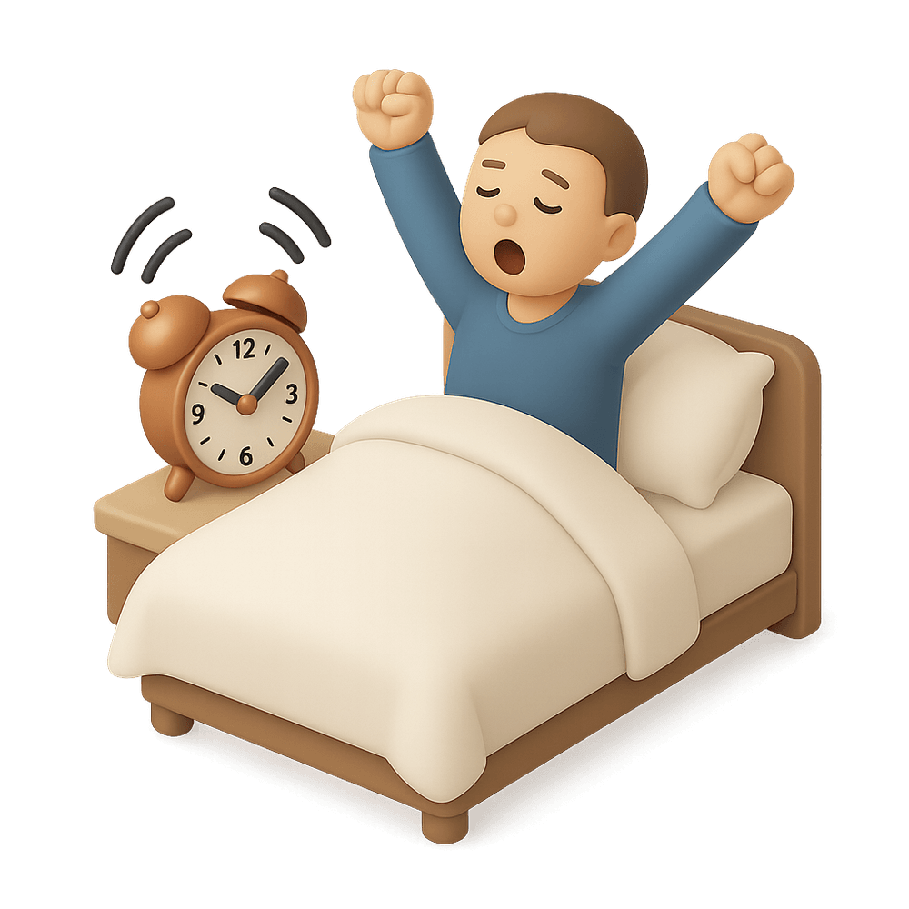 The process of transitioning from sleep to wakefulness, often involving routines such as turning off alarms, stretching, and preparing for the day ahead.
