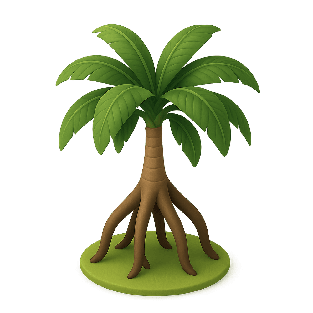 The Walking Palm is a unique tropical tree known for its stilt-like roots, which allow it to 'move' slowly across the forest floor in search of sunlight. Native to Central and South American rainforests, this plant is a fascinating example of adaptation in nature.