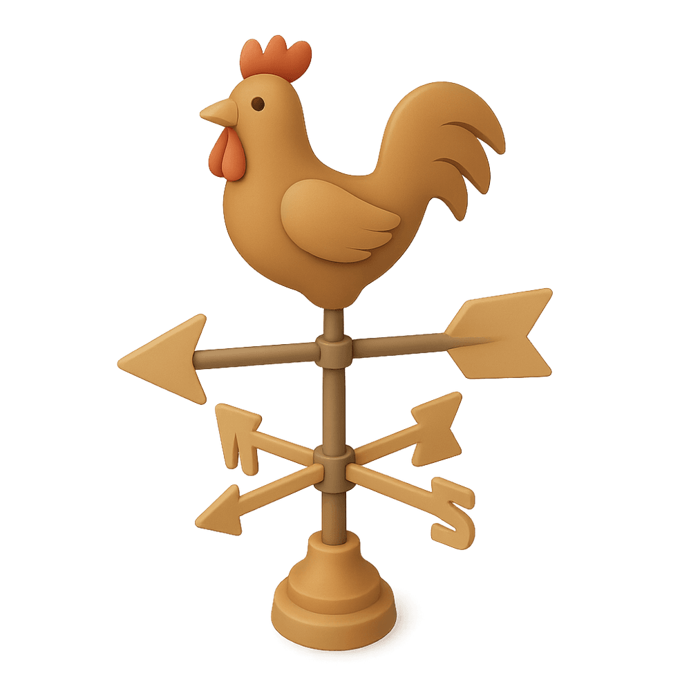 A weather vane is a decorative instrument, often mounted on rooftops, that spins to show the direction of the wind. It is popular among hobbyists for its craftsmanship and as a functional outdoor ornament.