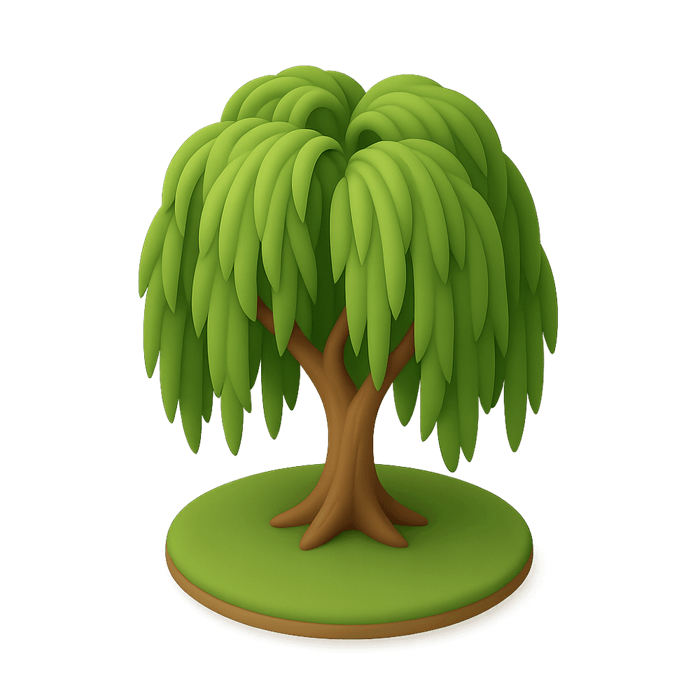 The Weeping Willow is a graceful deciduous tree known for its long, drooping branches and lush green foliage. Often found near water, it creates a tranquil, picturesque landscape and provides shade and habitat for wildlife.
