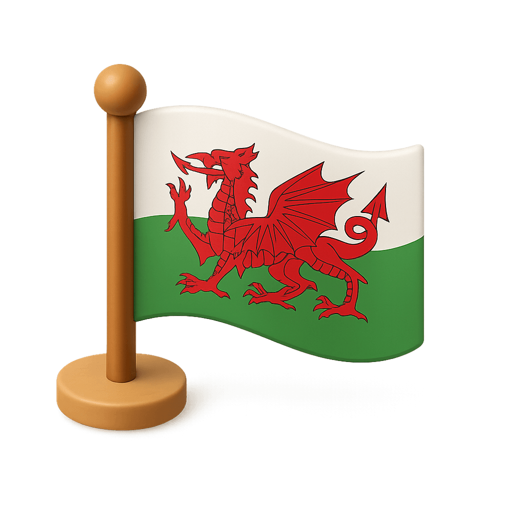 The Welsh Flag, known as 'Y Ddraig Goch,' features a red dragon passant on a green and white field. It is the national flag of Wales and symbolizes Welsh pride, heritage, and mythology.