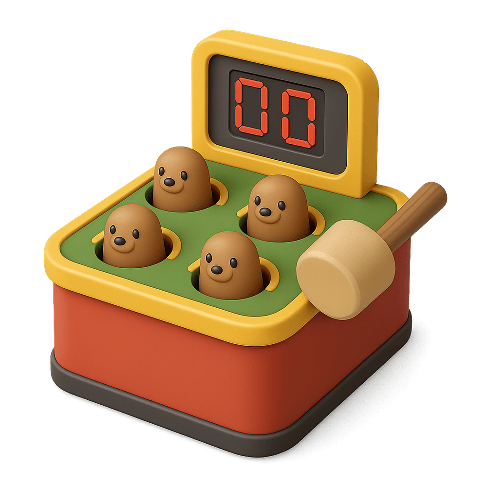 A classic arcade-style game where players use a mallet to hit mechanical moles that pop up randomly from holes. Popular at amusement parks and arcades, it tests reflexes and hand-eye coordination.