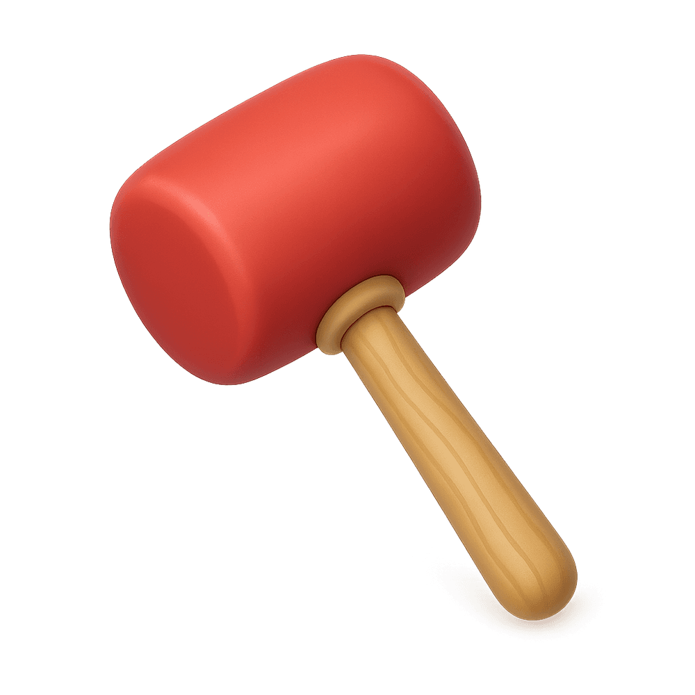 A soft, oversized mallet used in the classic arcade game Whack-a-Mole, designed for players to hit mechanical moles as they pop up. Commonly found in amusement parks and arcades, it is a symbol of fun and quick reflexes.