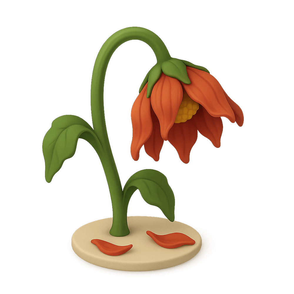A wilted flower is a once-vibrant bloom that has lost its freshness and vitality, often symbolizing the passage of time or fading beauty. Commonly found in everyday settings, it can evoke feelings of nostalgia or melancholy.
