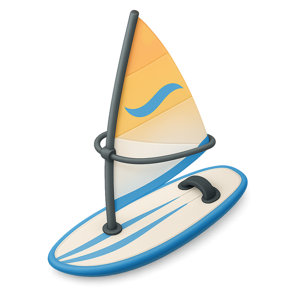 A windsurf board is a lightweight, buoyant board designed for windsurfing, a water sport that combines elements of surfing and sailing. It is used to glide across the water's surface, powered by a sail attached to the board.