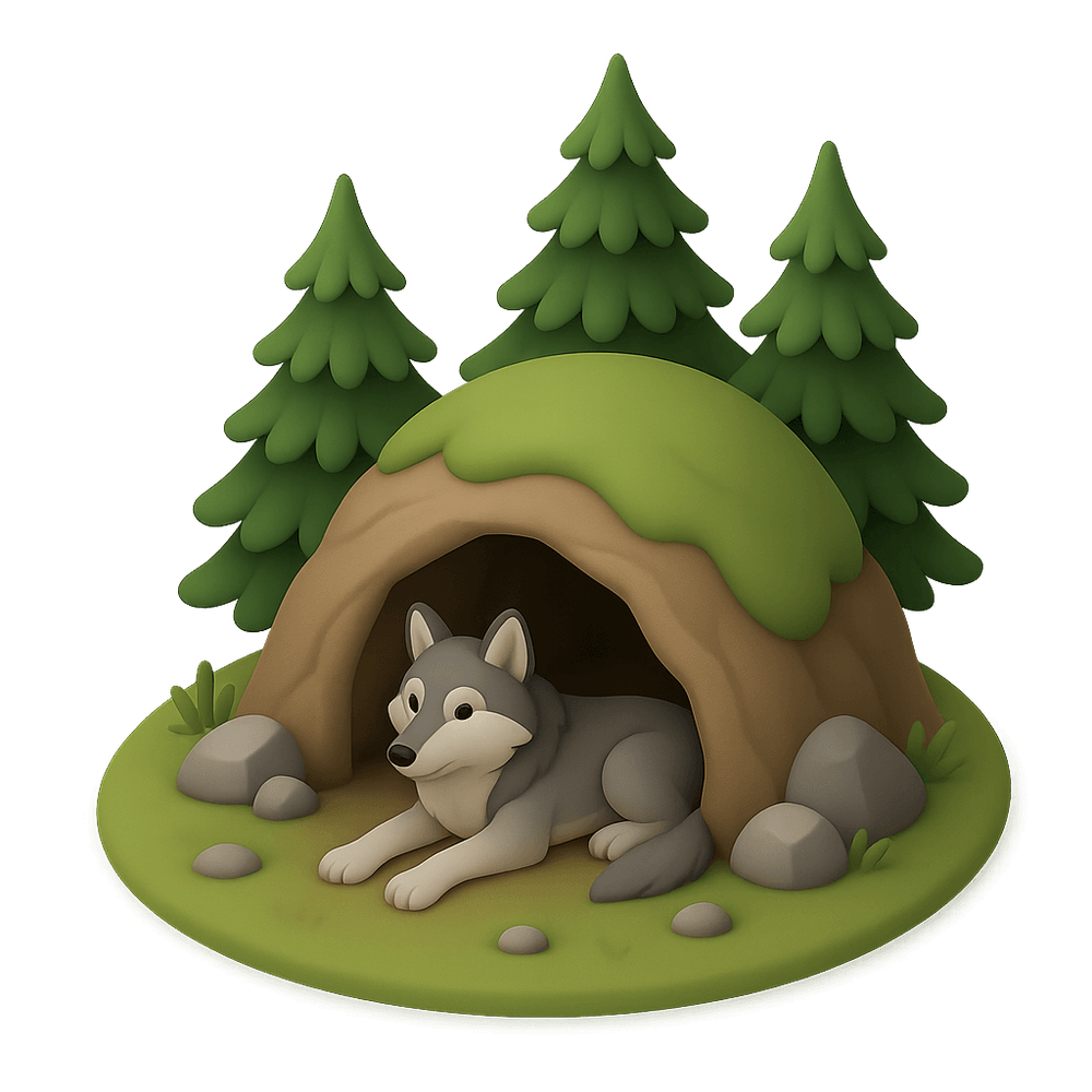 A wolf den is a natural shelter or burrow used by wolves for raising their young and protection from the elements. Typically found in forests, tundra, or grasslands, these dens are essential for the survival and safety of wolf packs.