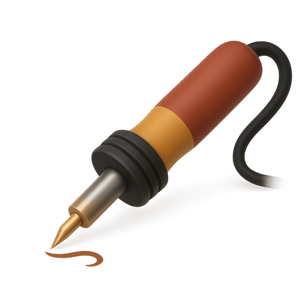 A woodburning pen is a handheld tool used for creating designs on wood by burning the surface. It is commonly used in the craft of pyrography, allowing hobbyists and artists to personalize wooden objects with intricate patterns and artwork.