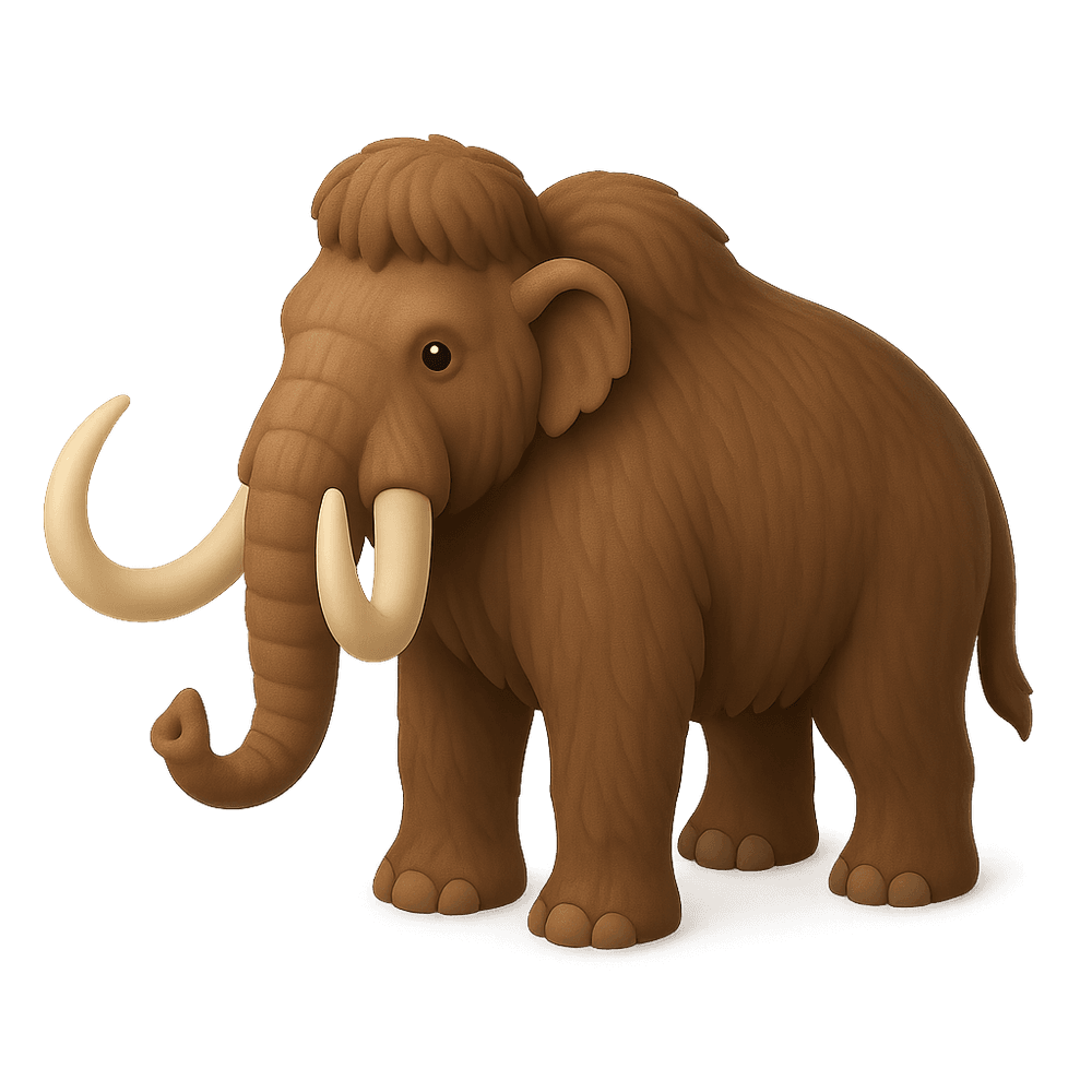 A large, extinct mammal known for its long, curved tusks and shaggy hair, the wooly mammoth roamed the Ice Age tundras and is closely related to modern elephants.