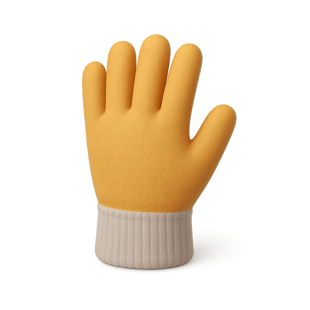 A work glove is a protective hand covering made from materials such as leather, rubber, or fabric, designed to shield hands from hazards like cuts, abrasions, chemicals, and heat during industrial or manual labor tasks. Essential for safety in construction, manufacturing, and various trades.