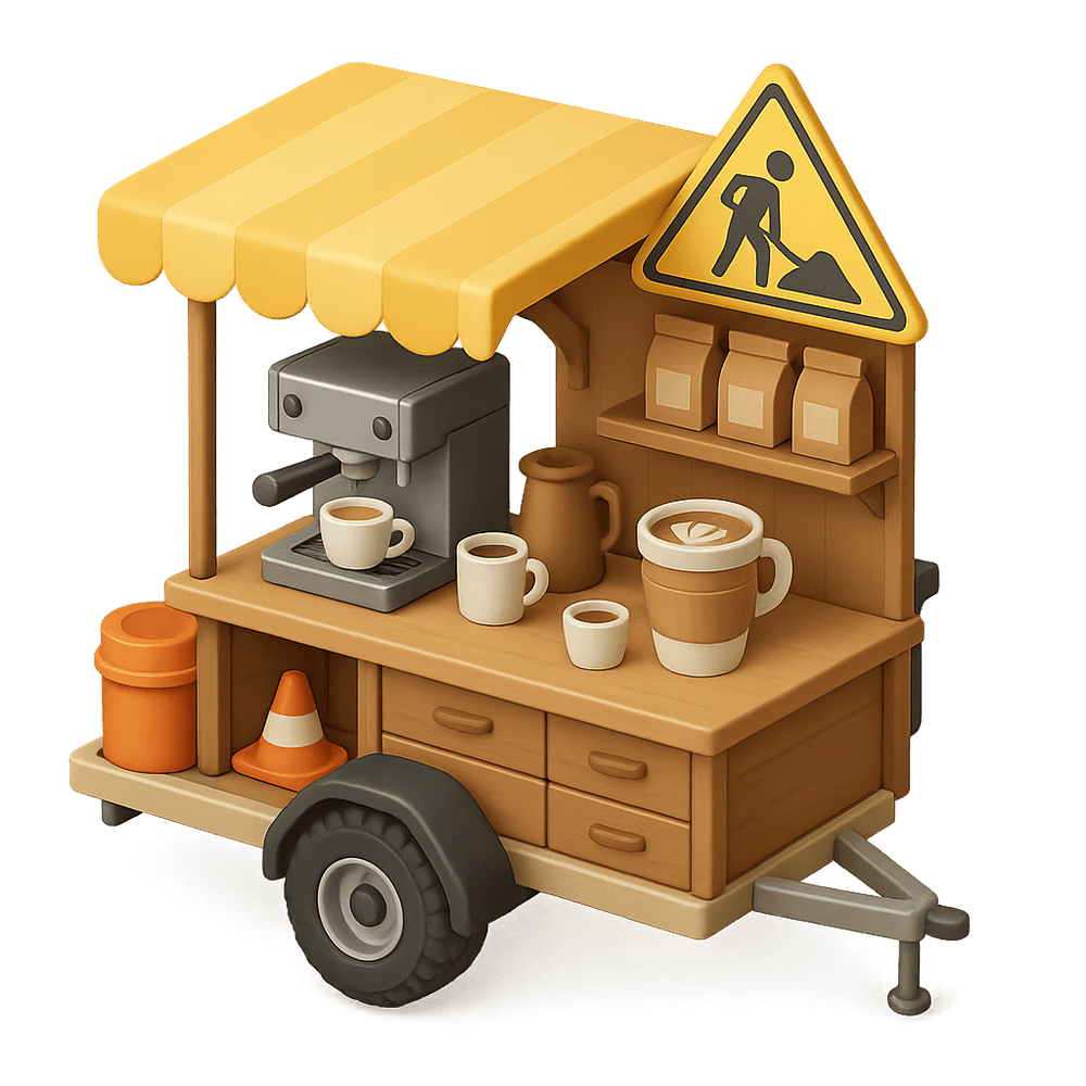 A mobile coffee cart designed for use at worksites, providing convenient access to fresh coffee and beverages for workers. Often equipped with brewing equipment and storage for supplies, it helps boost morale and productivity on the job.