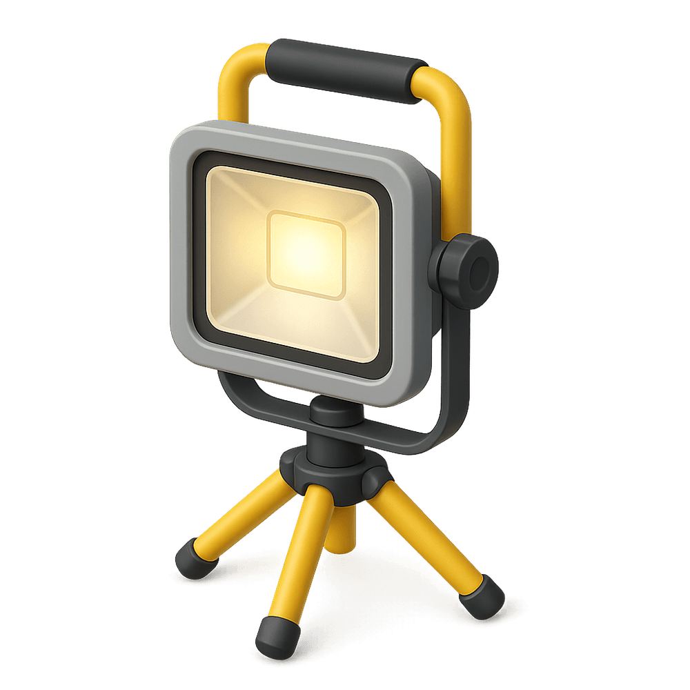 A powerful, portable lighting device designed to illuminate large work areas, especially in construction or industrial settings. Essential for night work or low-light environments, it enhances visibility and safety on the job site.