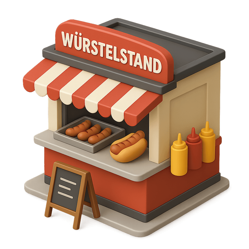 A Würstelstand is a traditional Austrian street food stand specializing in sausages, hot dogs, and quick snacks, often found in urban areas and popular for late-night eats.