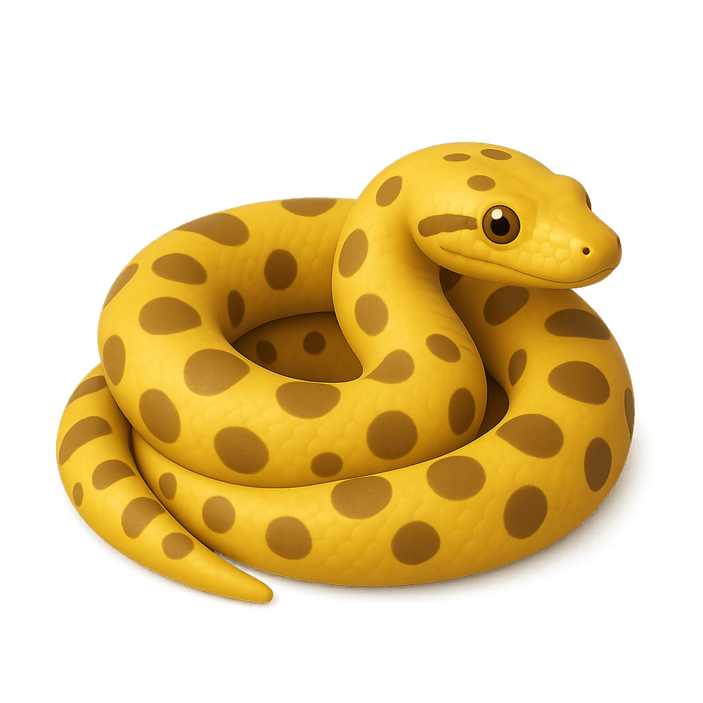 The Yellow Anaconda is a large, non-venomous snake native to South America. Known for its striking yellow and black pattern, it inhabits swamps, marshes, and slow-moving rivers, and is an excellent swimmer. This powerful constrictor preys on a variety of animals and is one of the largest snakes in the world.