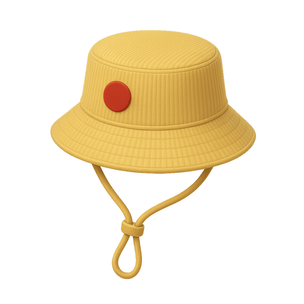 A stylish yellow bucket hat made from corduroy fabric, featuring a practical chin strap for a secure fit. Perfect for casual outings and sunny days, this accessory combines fashion and function.