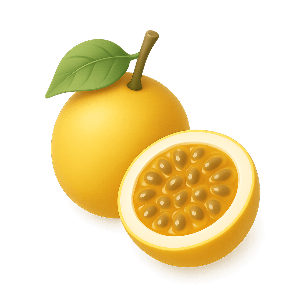 Yellow passion fruit is a tropical fruit known for its bright yellow skin and aromatic, tangy-sweet pulp. It is commonly used in juices, desserts, and as a flavorful ingredient in various dishes.