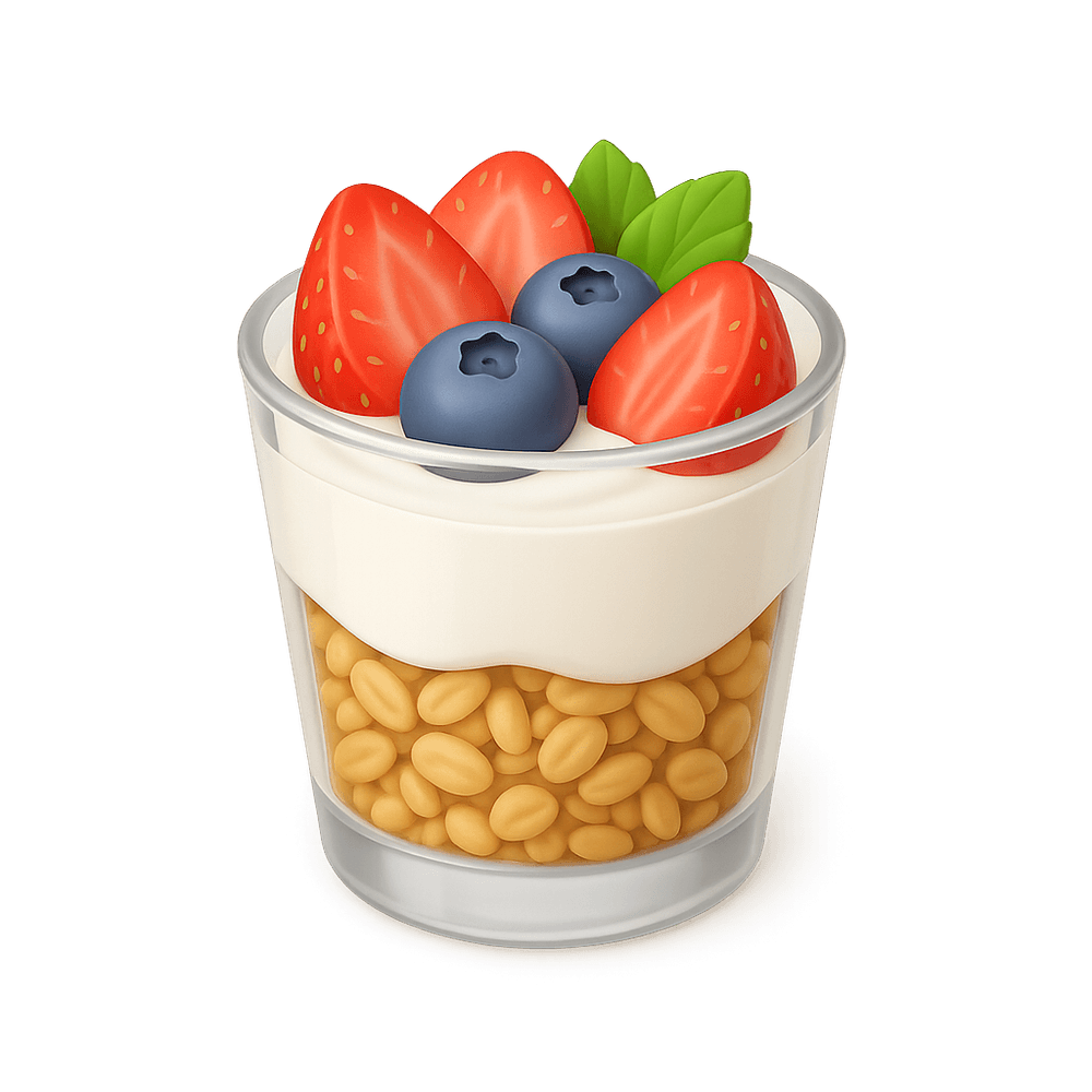 A Yogurt Parfait is a layered dessert or snack made with yogurt, fresh fruit, and granola, often served in a glass. It is popular for breakfast or as a healthy treat.