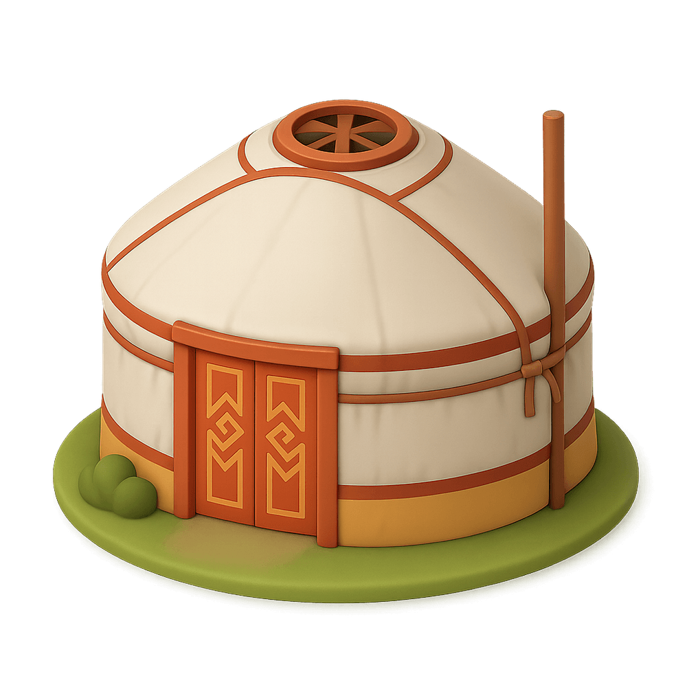 A yurt is a portable, round tent traditionally used as a dwelling by nomadic peoples in Central Asia. It is made of a wooden frame covered with felt or fabric, offering comfort and protection in various climates.