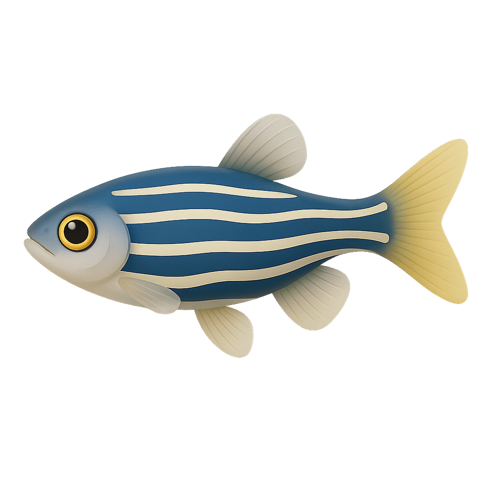 The Zebra Danio is a small, active freshwater fish known for its striking horizontal stripes and ease of care. Popular in home aquariums, it is native to South Asia and is often used in scientific research due to its hardiness and adaptability.