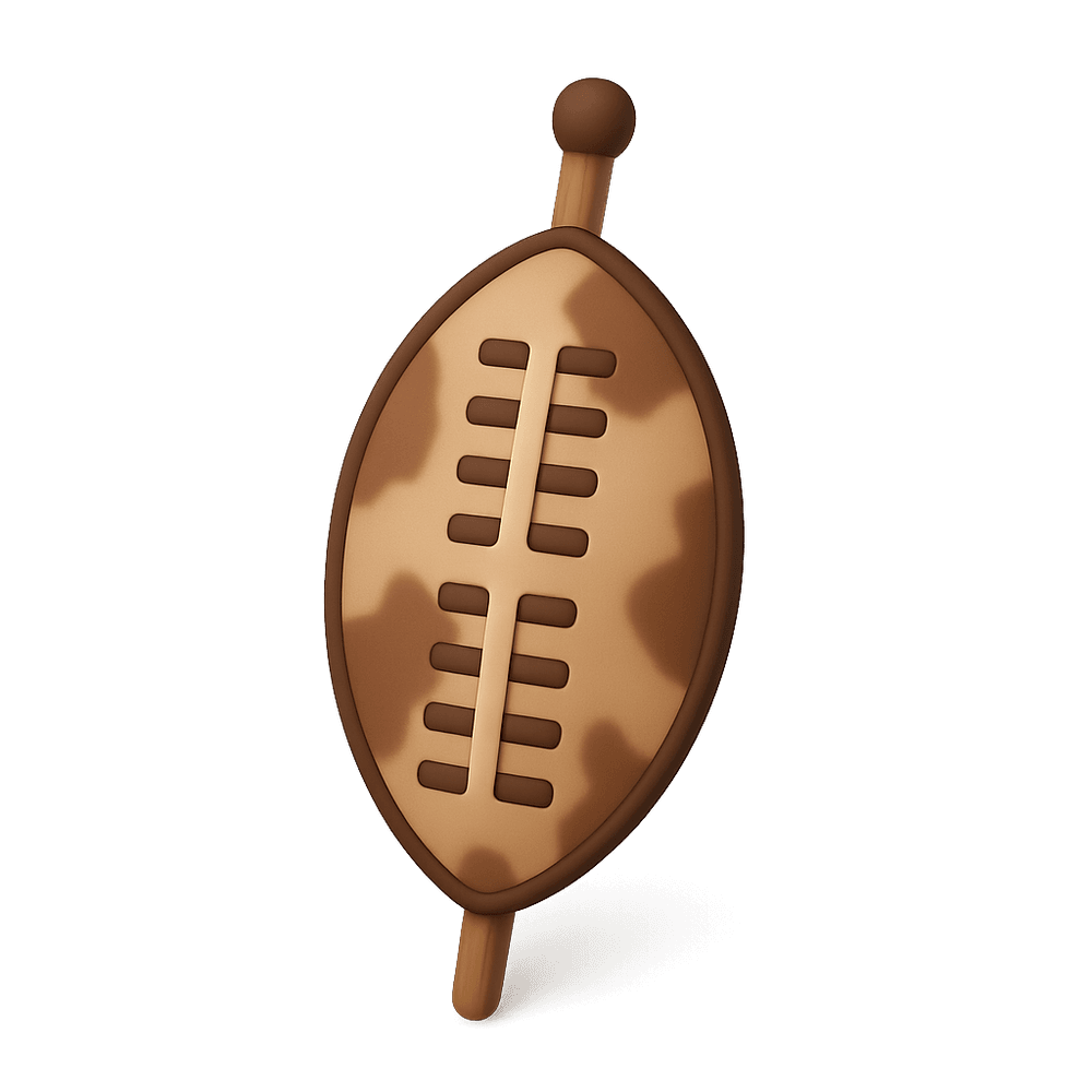 A traditional shield used by the Zulu people of Southern Africa, crafted from cowhide and historically used in warfare, ceremonies, and as a symbol of status and identity.